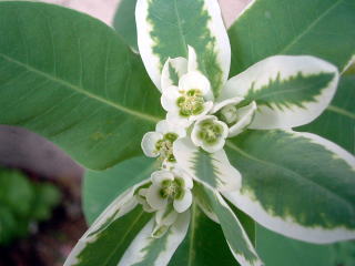 初雪草(ハツユキソウ) 花弁と葉の縁が白く、雪をうっすらと被ったよう。 「峰の雪」とも言います。 ねっ、涼しげでしょう。 (世田谷区船橋 船橋西保育所) |