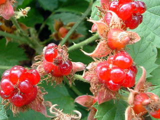 | 赤ずきんちゃんはなぜ道草を食ったのか? 森に住むおばあさんに会い行く途中(一種の姥捨なのですが)、木イチゴ摘みに夢中になってしまったのです。 この季節、ヨーロッパの森には実にたくさんの野イチゴができます。ラズベリー、ブルーベリー、クランベリーなど。 子供の頃田舎で暮らしていた私も、学校帰りによく道草して摘んだものです。 |
