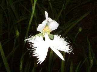 鷺草(サギソウ) 我が町、世田谷区の花です。 この花には、常磐姫の悲しい伝説があります。 (伝説はココをクリック) 蘭の仲間です。 (世田谷区松原) |