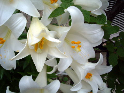 百合(ユリ) 「純潔」、「清楚」を表すユリ。 白百合は聖母マリアの象徴です。 ミッション系女学校の多くがユリの花を校章にしているのもこのためです。(シドニー・ポアチュエ主演の「野のユリ」(映画)はオスカーを取っています) フランス絶対王政ブルボン王朝の家紋もユリでした。(フランス国花のひとつです) 子供の頃参加したボーイスカウトの記章もユリ。そして、母の名も「ユリ」です。 (世田谷区赤堤) ←テッポウユリ 他にもあります。ココをクリック |