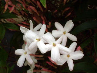 | 茉莉花(ジャスミン) 中国のジャスミンティーは私の好きなお茶で欠かしたことはありません。中国語発音ではmolihuacha、そう、マリファナとほぼ同じ。中国語の4声がうまく発音できなくて、税関で持ち物全部没収された方もいるとか・・・(収容所送りになる寸前だったとか) (世田谷区松原) |