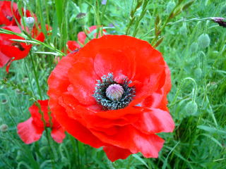 雛罌粟 (ヒナゲシ) 「芥子粒」といわれるくらい実は小さい。アンパンの上にまぶされています。 (世田谷区上祖師谷) |