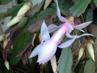蝦蛄葉サボテン(シャコバサボテン) 葉の形がシャコに似ていることから名が付きました。同じようなサボテンで「蟹葉(カニバ)サボテン」がありますが、こちらは2月頃咲きます。 (世田谷区羽根木) |