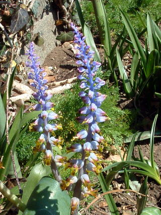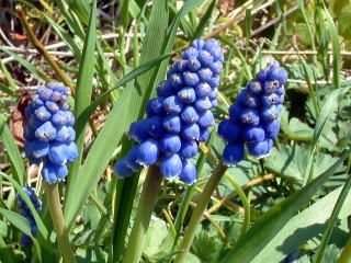 ムスカリ ニョッキリ、モッコリ、春のお目覚め ムスク=麝香(ジャコウ)から付いた名 ユリ科の花です。 (世田谷区祖師谷) |