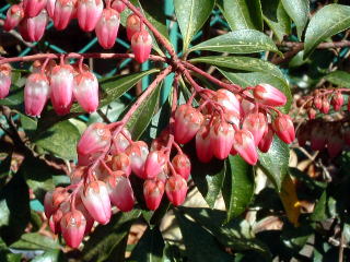 | 馬酔木(アセビ) 葉に毒があり、馬が食べると 中毒を起こし酔ったようになるところから。 (世田谷区経堂) 白花 (港区南青山) |