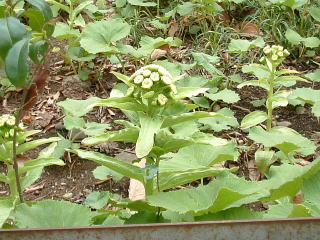 御形(ゴギョウ) 別名:母子草(ハハコグサ) (世田谷区千歳台) 七草の答 芹(セリ)、薺(ナズナ)、御形(ゴギョウ)、萋(ハコベラ)、仏の座(ホトケノザ)、菘(スズナ)、蘿蔔(スズシロ)、菘(スズナ)は蕪、蘿蔔(スズシロ)は大根です。八百屋さんまたは以下のホームページでご確認下さい。 http://www.hana300.com/haru77.html |
