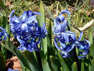 | ヒヤシンス 太陽神アポロンに寵愛されたギリシャ神話の美少年「ヒュアキントス」が円盤に当たって死んだとき、血に染まった草から咲いた花、という不吉な名前。 カーリーヘアのようです。 (世田谷区祖師谷) |