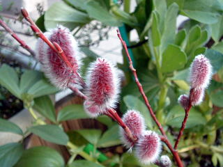 猫柳(ネコヤナギ) ふわふわした猫の尻尾のようですが雄蕊です。 (港区南青山) |