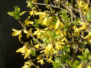 | 連翹(レンギョウ) この花も中国原産。 木犀(モクセイ)の仲間です。 (世田谷区砧) |