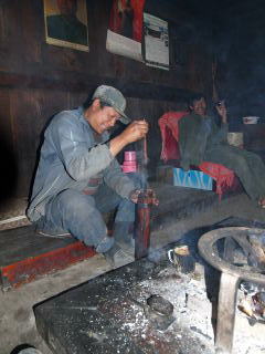 | ランチはチベットの村の民家(裸電球1個と囲炉裏、まるで戦前の日本の農家にタイムスリップしたようです)でいただきました。 パンとチーズ、そしてバター茶の質素なものでしたが、おいしくいただきました。 バター茶は、竹の筒にお茶とミルク、バターを入れ撹拌して作ります。(雲南省香格里拉県安南村で) 雲南省最北部の3県(欽徳県、香格里拉県、維西県)を合わせて、迪慶(ディーチン)蔵族自治州と呼びますが、梅里雪山をはじめ、4000m以上の雪山が多くあります。梅里雪山以外は登山を許されており、中にはロープウェーで一気に4500mまで登ることができる山(シーカー雪山)もあります。 特に白馬雪山の麓には青いケシをはじめ、青い石楠花、そばかすユリ(ノモカリス)など珍しい花が咲いており、花のころに再び訪れたいと思っています。(ちなみに、中国の雪山の定義は「頂上部の雪が1年中消えないこと」です) |