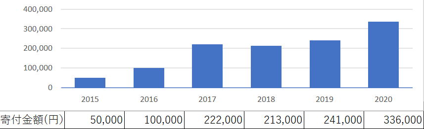 2015年より始めたチャリティ活動は6年が経過しましたが、お陰様で寄付金額は累計100万円を突破しました。皆様の善意とご協力の賜物と感謝しております。当該奨学金は地震のあった2011年に母親のお腹にいた胎児までが対象になります。あと14年、私の体力・気力が続く限り継続してゆきたいと考えていますので、引き続きご協力賜りますようお願いいたします。