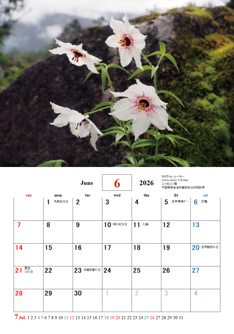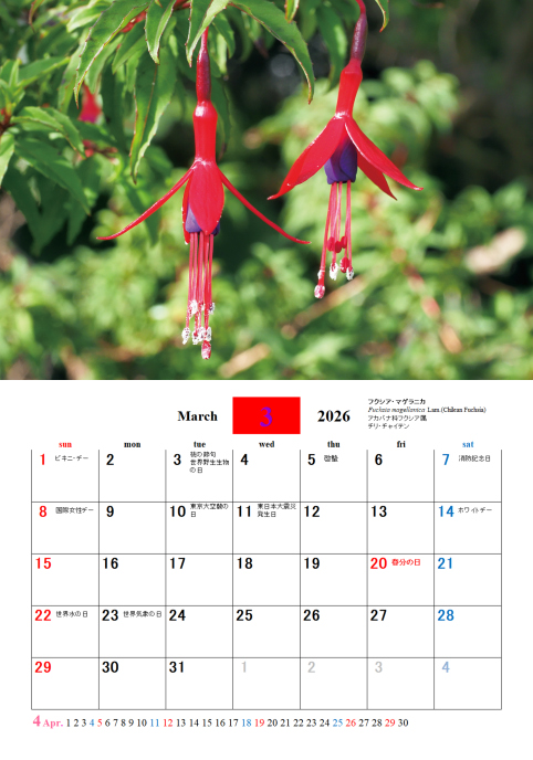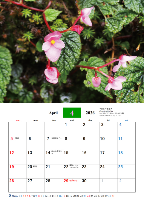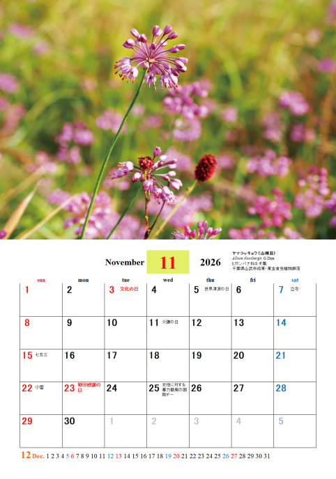 各地で撮影した花で四季の花カレンダーを作成しました。