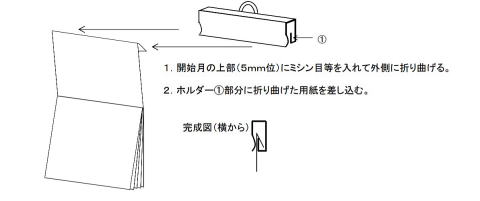 初めて購入される方や昨年購入されなかった方にはカレンダーホルダー(上辺の角が垂れるのを防止する吊り具)をお付けします。これまでホルダーをお求めでなかった方、もしくは紛失された方で必要とされる方はカレンダー注文時に一緒にお申し込みください。